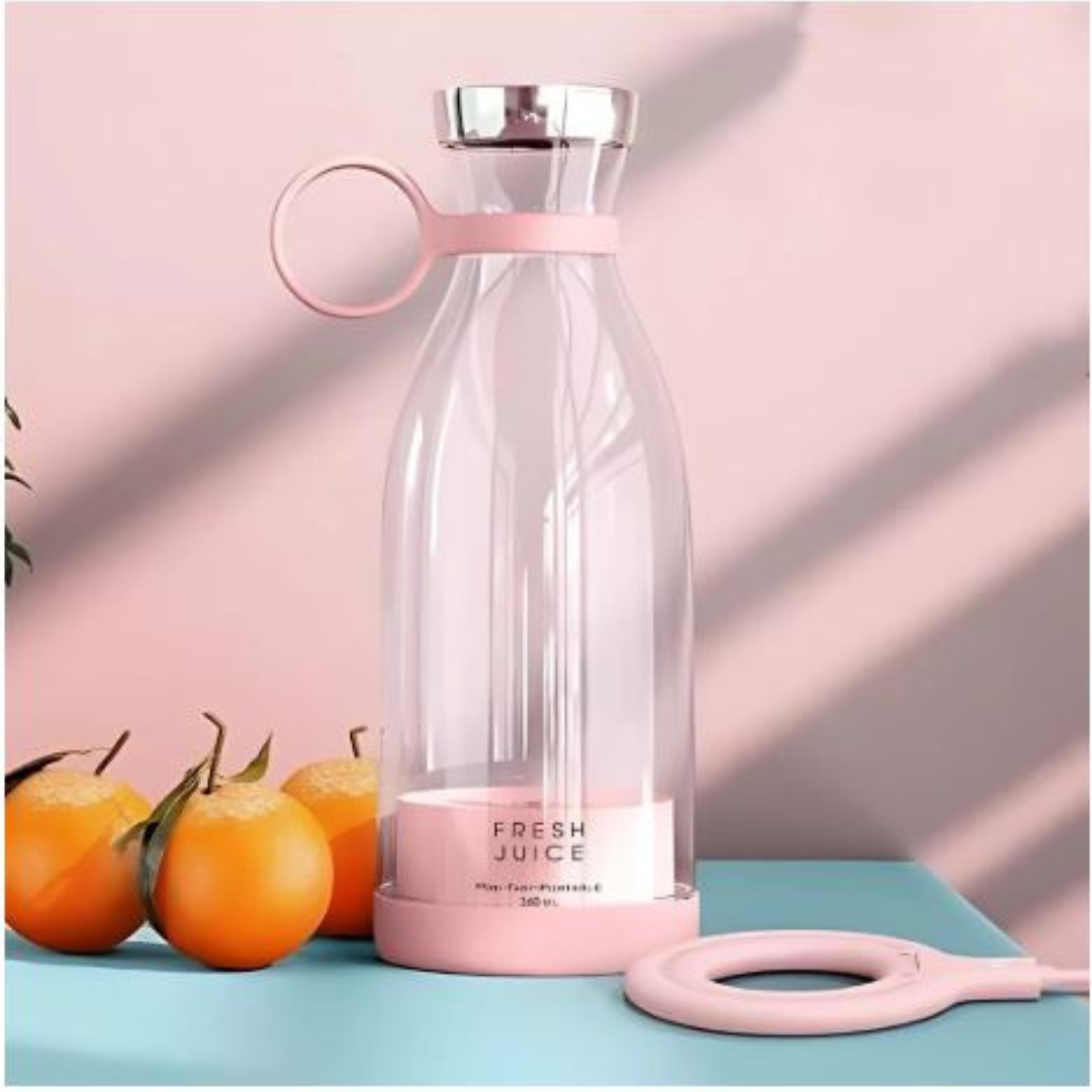 Con esta botella Mini Licuadora Portátil disfruta de tus batidos y jugos en cuestión de segundos.